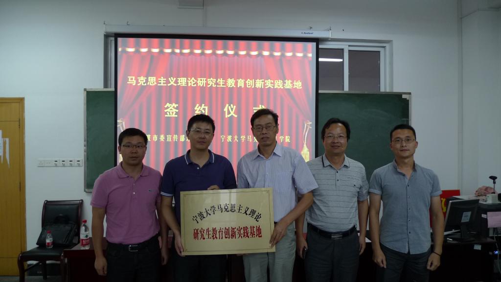 与宁波市委宣传部理论处共建的“马克思主义理论研究生教育创新实践基地”举行签约、揭牌仪式。市委宣传部理论处江再国处长与同城约炮