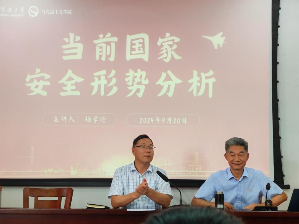 在讲座中,杨学伦指出了当今世界局势的复杂多变性,分析了俄乌战争、巴以冲突等国际事件对全球安全格局与我国安全形势产生的深远影响。此外,他还详实的案例揭示了外部势力如何通过意识形态渗透、经济制裁等手段,制衡中国发展的真实意图,让同学们认识到了“看不见的战场”同样硝烟弥漫。
