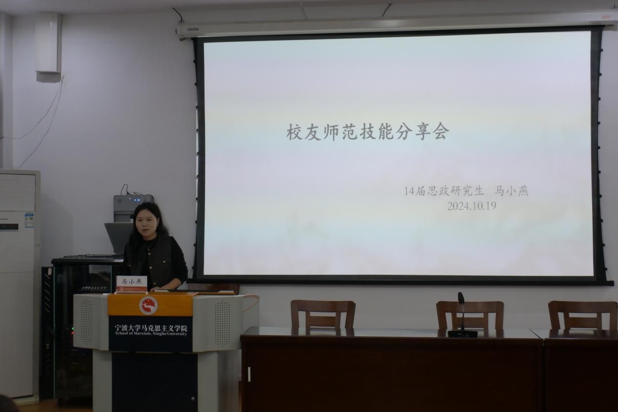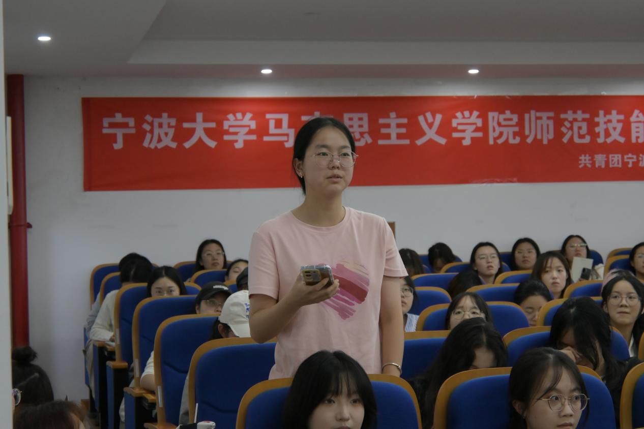 24级马理论专业研究生 金良颖:此次师范技能培训讲座,让我时隔多年再次见到了马小燕老师。她作为我的高中政治老师及班主任,生动有趣的课程和认真负责的态度,培育出了一批包括我在内的对政治学课满怀热忱的学子。从学生到师妹,从高中到研究生,再一次体会坐在台下听课的感觉。此次讲座,两位老师从考试经验、工作经历、生活感想等方面,详细地给大家分享了心得体会,展现了宁大马院校友的风采,也给研究生们提供了一个职业选择。我希望在未来三年里,能够带着这一份感激、自豪和热爱,走出自己的道路,作出积极的贡献。