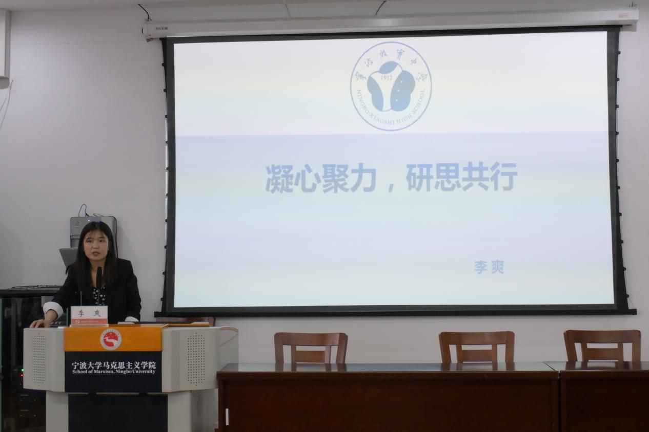 李爽,2019届研究生校友,现任效实中学思政教师兼学生处副主任,曾担任校团委副书记、班主任,任职期间多次获校级优秀教师、校级卓越班主任等荣誉称号。她以“凝心聚力,研思共行”为主题,从如何上一节好课导入,提出几条建议:一是要满怀激情,面向评委,不要害怕小错误,二是要集中出彩,建议同学们有意锻炼一些过渡语言的使用以及利用一些环节灵活备案。同时,李爽叮嘱同学们要对知识有所敬畏与追求,深入了解教材、分析教材,做到因材施教;要对学生有所关爱和尊重;要承担与坚守教师的责任。
