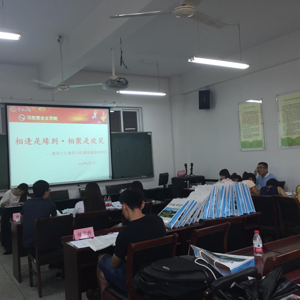 分研会志愿者队伍一早就来到了迎新现场。全天新生报到在学院102报告厅顺利的进行,报到现场分设材料上交处、信息登记处、资料领取处、休息区。下午4点,2015级新生已报到完成。