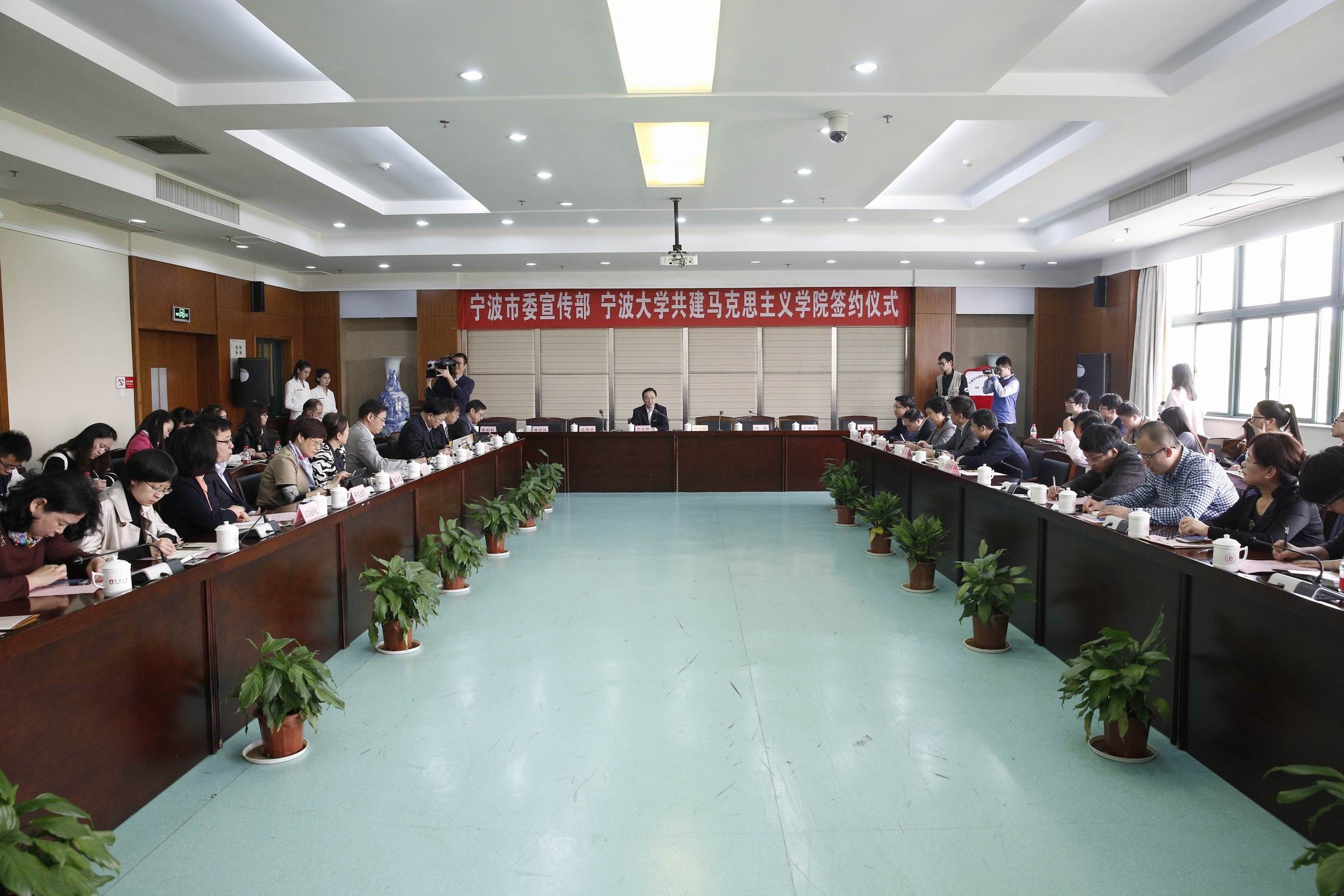 签约仪式在安中楼碧华厅隆重举行。市委常委、宣传部部长万亚伟,市委宣传部副部长郑丰,市教育局副局长胡赤弟,市社科院副院长陈利权,市委党校副校长郑湘娟,宁大党委书记郭华巍,校长沈满洪,校党委副书记唐绍祥,校党委委员、宣传部部长张真柱参加了签约仪式。仪式由沈满洪主持。