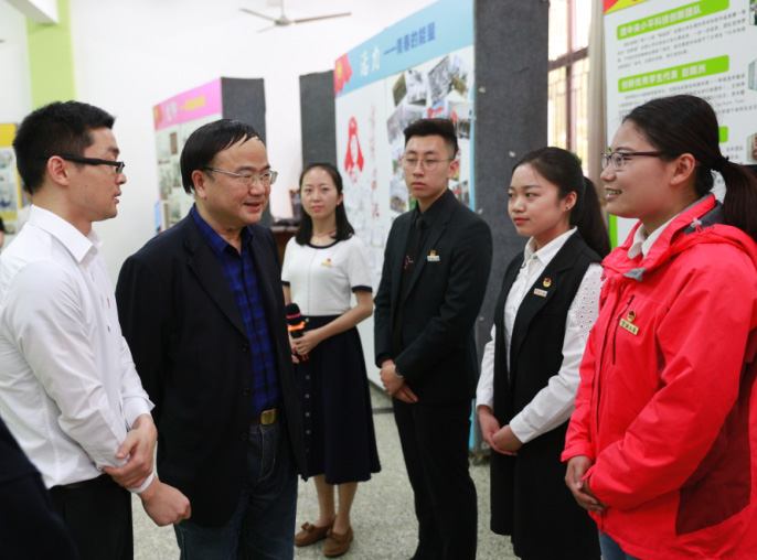 唐绍祥倾听了校优秀学生代表对所在团队的介绍。作为学校一支极具特色的理论宣讲队伍,同城约炮