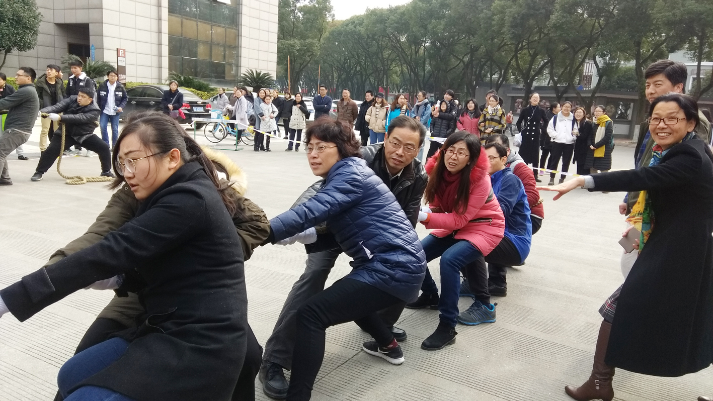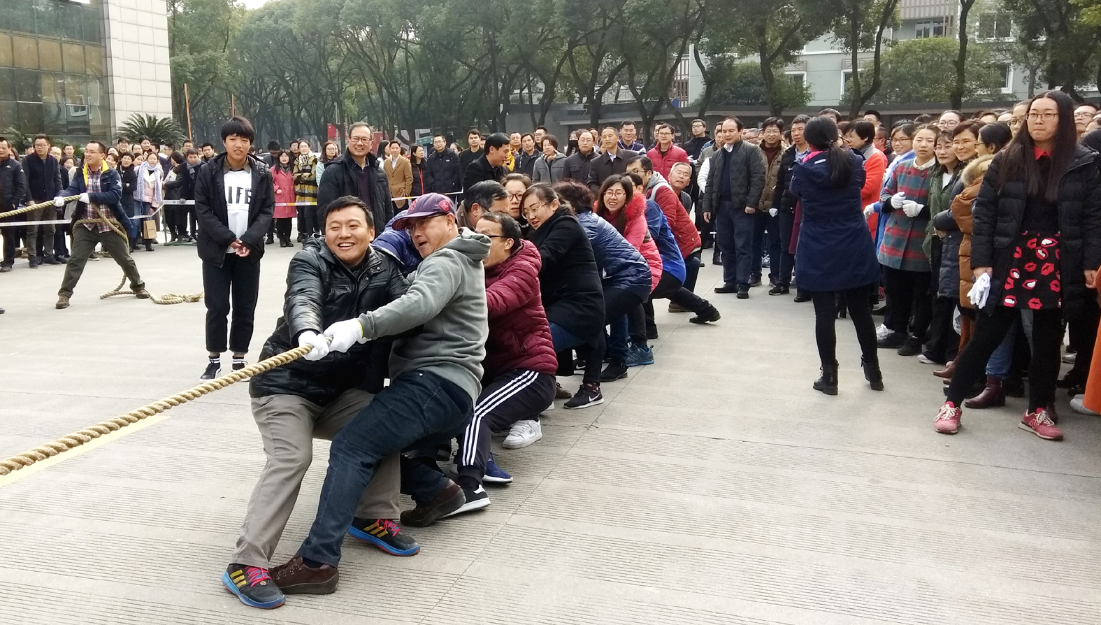 “迎新年”教职工拔河比赛在安中大楼前拉开帷幕。同城约炮