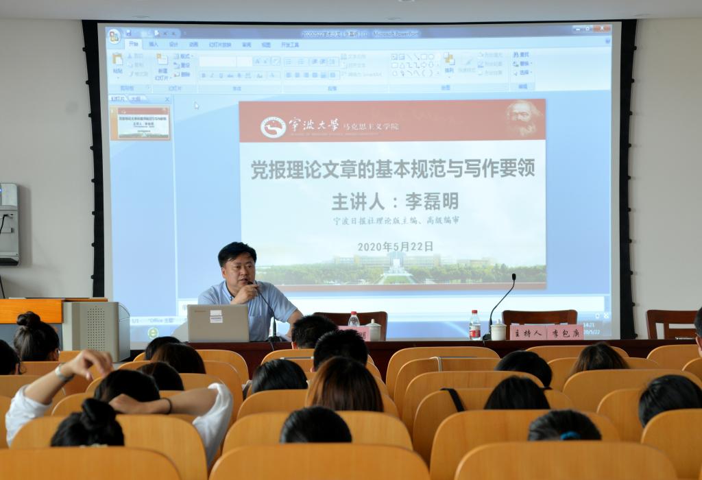 “党报理论文章的基本规范与写作要领”主题沙龙在包玉书科学楼7号楼406报告厅举行。本次沙龙特别邀请了《宁波日报》理论版主编、高级编审李磊明就“如何写好党报理论文章”作了分享交流。执行院长李包庚主持了沙龙。
