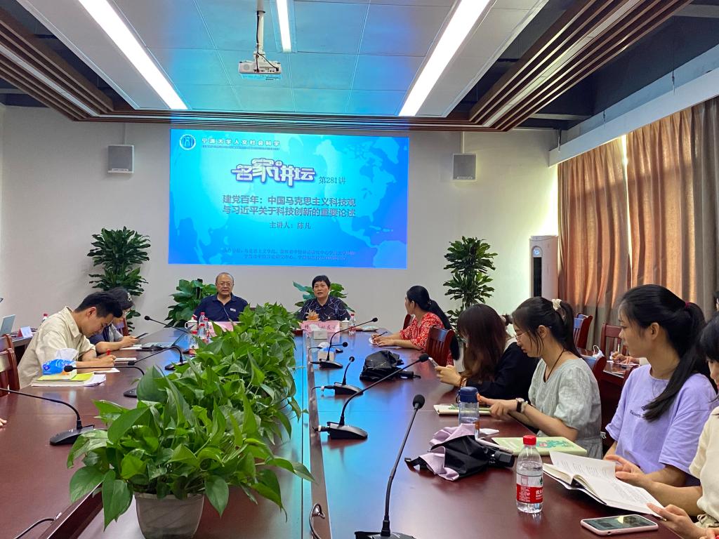 陈凡教授首先以自身从事科技经历为切入点,讲述了与“中国马克思主义科技观”的历史情缘。对“中国马克思主义科技观”的形成和发展,陈凡教授指出,中国马克思主义科技观是伴随着中国共产党一百年的探索实践历史进程所形成和发展的。他从马克思、恩格斯对“科技”的相关重要论述为起点,进而讲述到在中国社会主义革命和建设时期,毛泽东同志对“科技”所采取的“自力更生”“向科学进军”的态度与政策,正因为如此,我国取得了“两弹一星”的伟大成就。接着,陈凡教授又讲述了邓小平同志对“科技”的主张,即“科学技术是第一生产力”,实现四个现代化、发展社会主义生产力、进行改革开放,都离不开“科学技术”。最后,陈凡教授重点论述了习近平总书记关于科技创新的相关主张。讲述了“科学技术”在当下所面临的严峻竞争形势、“科学技术”所具有的历史责任,推动中国再次为世界作出新的更大的科技贡献、“科学技术”所肩负的历史使命,推动中国从科技创新大国转向科技创新强国,推动实现中华民族谋复兴中国梦。