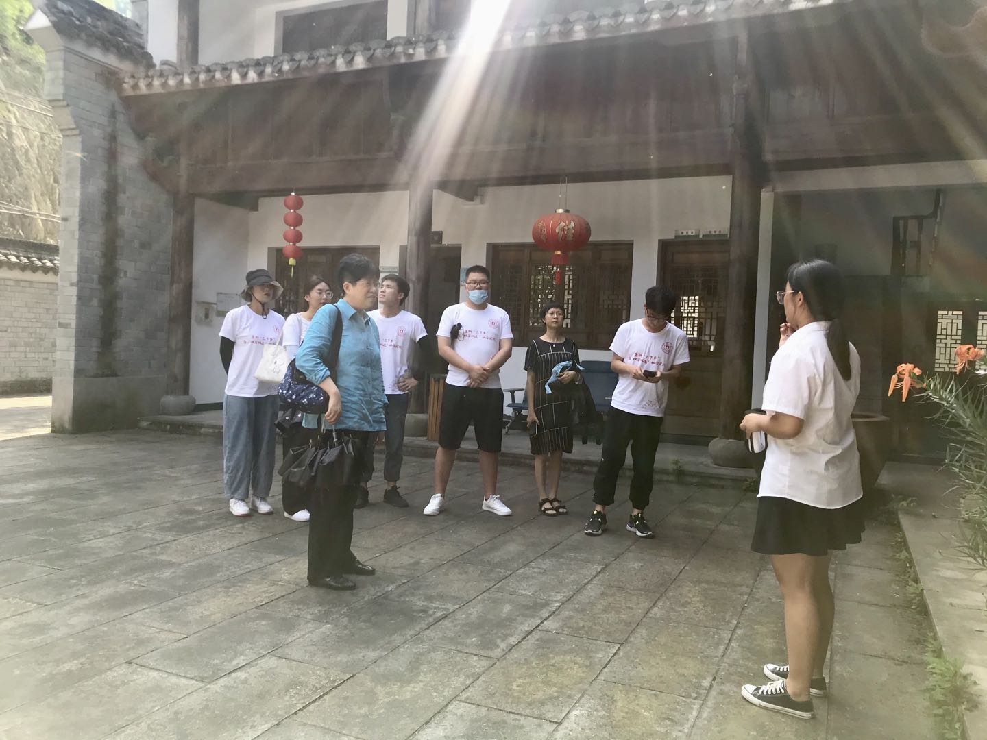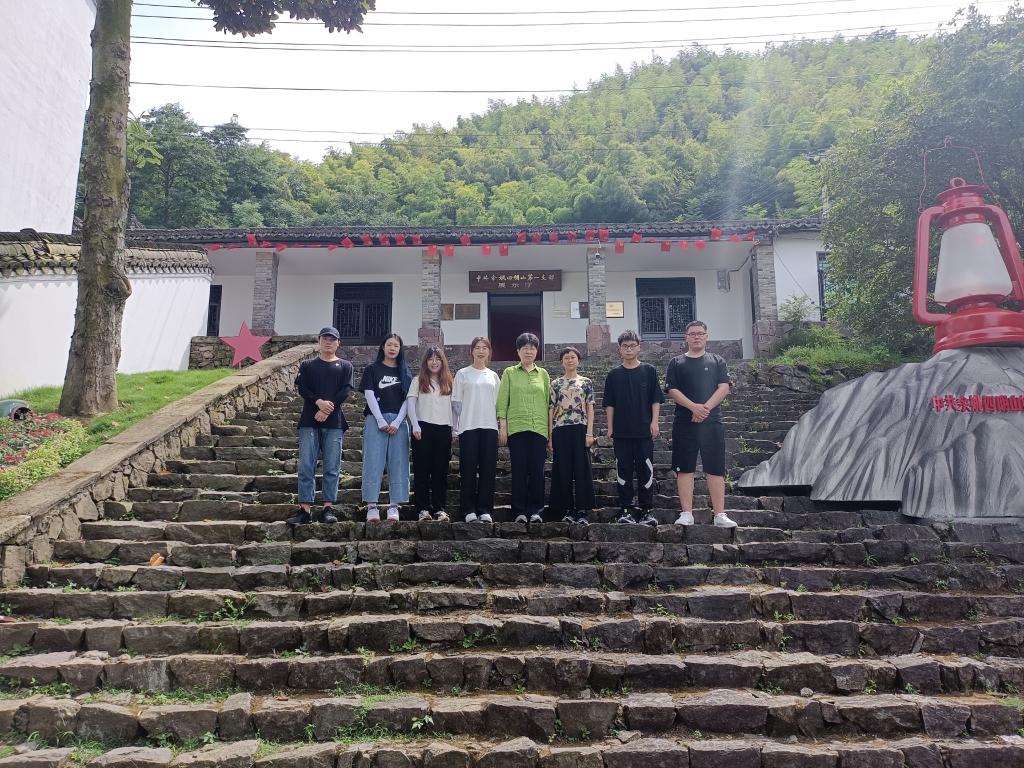 随后,在镇政府团委书记殷明的带领下,师生一行参观了位于柿林村“耕读传家”四合院内的中共余姚四明山第一支部纪念室。在当地至今仍在流传着两篮馒头、回马亭、飞石崖等一个个烽火故事中,团队成员充分领略了革命的火种是如何在红色的土地上生根发芽、顽强生长、最终燎原遍地的。殷书记介绍说,柿林村党支部已经成为当地红色旅游景点之一,成为爱国主义教育的重要基地。