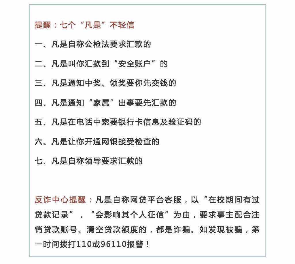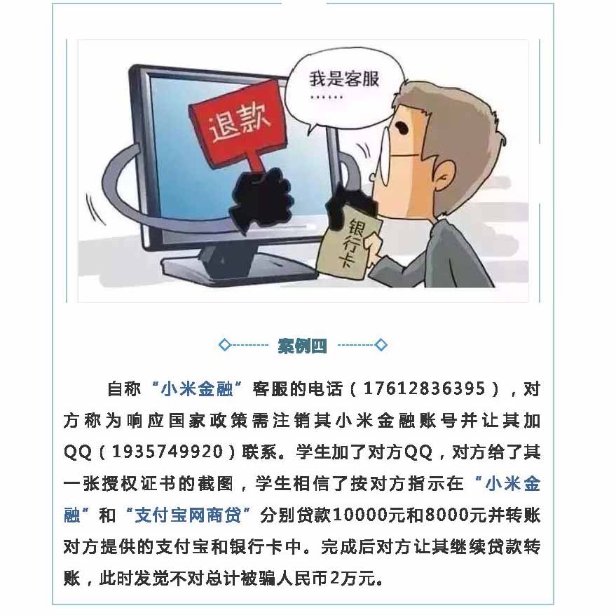 近期,我市不少大学毕业生接到自称是某贷款平台客服的电话,对方声称事主在校期间有过贷款记录,现在国家出台新规禁止校园贷,要求其配合注销贷款账号,否则会影响其个人征信。