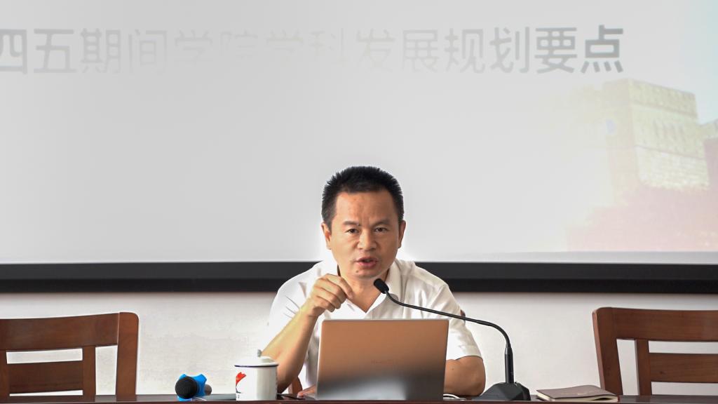 会上,李包庚以《共创学院学科高质量内涵式发展》为题,围绕学院发展现状、学科发展的机遇和挑战,学科发展要点等方面对学院“十四五”规划作了阐述。他表示,学院师资队伍逐年优化补充,年轻化、博士率有所提升,工作氛围和谐融洽,凝聚力大大增强;教师科研质量提高,高级别课题逐年增加;学科属性进一步增强;研究生培养质量不断提升,近5年,共有30名硕士研究生考取中国人民大学、中国社科院等名校博士;本科生建设渐入佳境;平台建设不断取得新进展;教风学风越来越好;综合实力快速提升。同时,他指出,要进一步加强教材建设、做好教学成果奖培育。李包庚强调,要力争在2021年教育部第五轮学科评估取得好成绩;力争科研继续取得标志性成果。