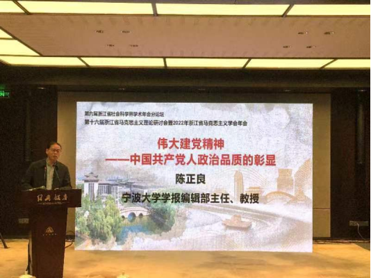 陈正良教授、冯程老师出席会议。由陈正良教授,研究生王珂、李昱丰撰写的论文——《伟大建党精神:中国共产党人政治品质的彰显》荣获“第十六届浙江省马克思主义理论研讨会”二等奖。在会上,陈正良教授作了题为《伟大建党精神——中国共产党人政治品质的彰显》的专题报告。