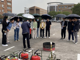 组织部分师生于包玉书广场进行了一年一度的消防灭火演练。