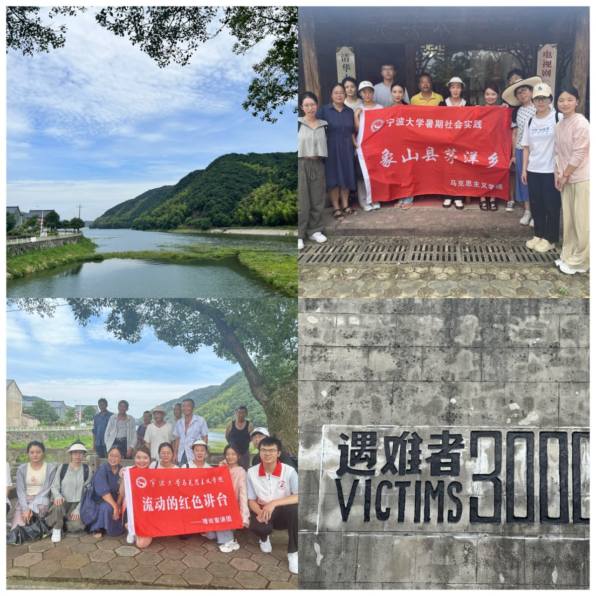 考察过程中实践队到访爱国主义教育基地——日本侵略军在象山罪行陈列馆,全体队员认真聆听现场讲解,透过一件件实物、一幅幅图片、一段段文字,队员们深刻体会到曾经的那段苦难史、抗争史和奋斗史,不断振奋起不忘屈辱,砥砺自强,为实现中华民族伟大复兴的中国梦不懈奋斗的使命担当。“‘挖掘,阐释,凝练,表达’是所有人文社科学者的使命,作为思想政治教育方向的研究生,日后我将继续挖掘红色资源,打磨表达能力,讲好茅洋故事、象山故事、中国故事”实践队员如是说。另一位来自马原理方向的队员也同样感触满满,她说:“透过象山抗日斗争的真实历史画卷,更坚定了我勿忘国耻、振兴中华的信念。身为党员,我要以榜样为镜,向先锋看齐,认真学习理论知识并积极投身于中国特色社会主义伟大实践。”
