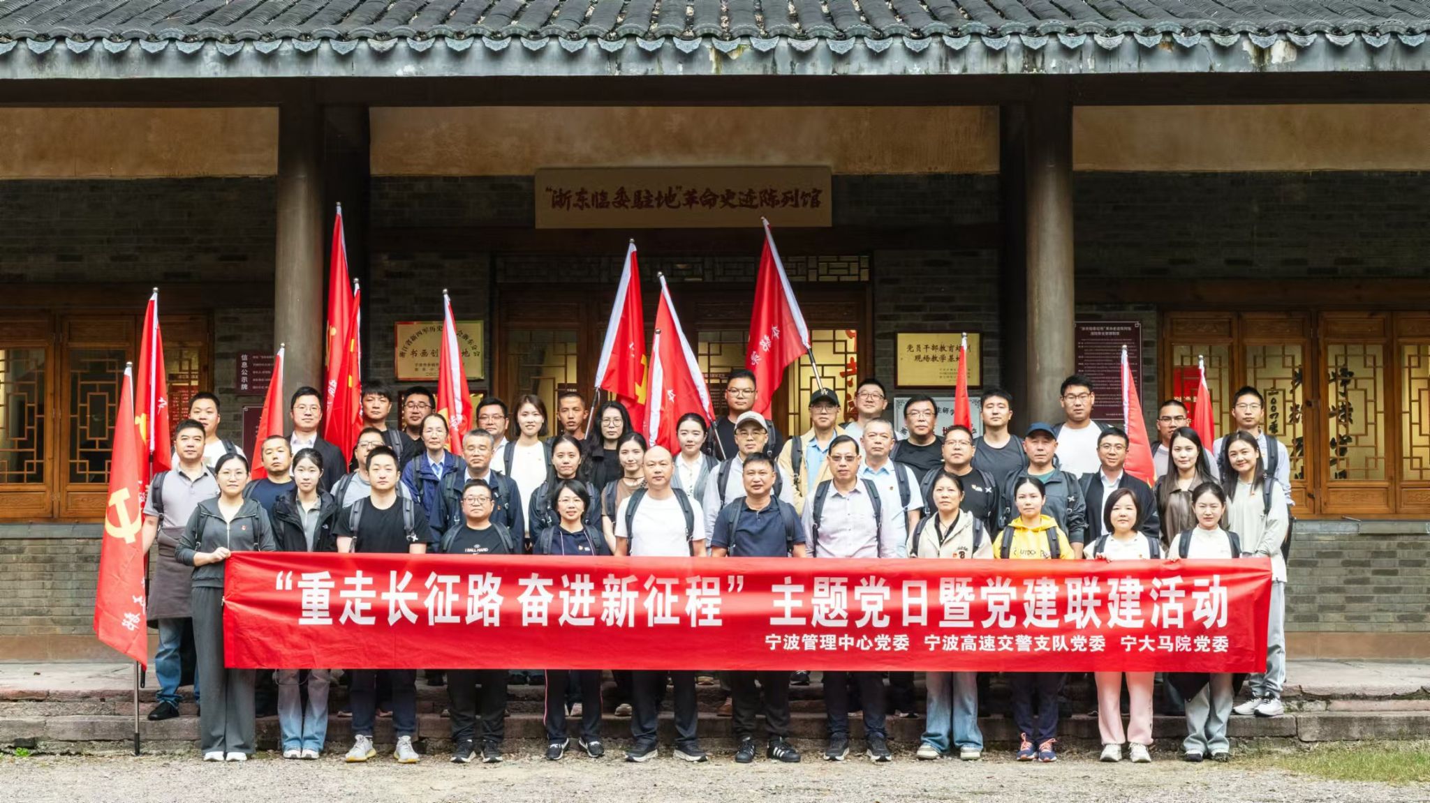 党委携手浙江省交通集团高速公路宁波管理中心党委在余姚大隐镇中共浙东临委驻地组织开展了“重走长征路,奋进新征程”主题党日活动。此次活动旨在通过重温红色历史,不忘初心,深刻理解中国共产党在抗日战争和解放战争时期所经历的艰苦奋斗和波澜壮阔的发展历程。