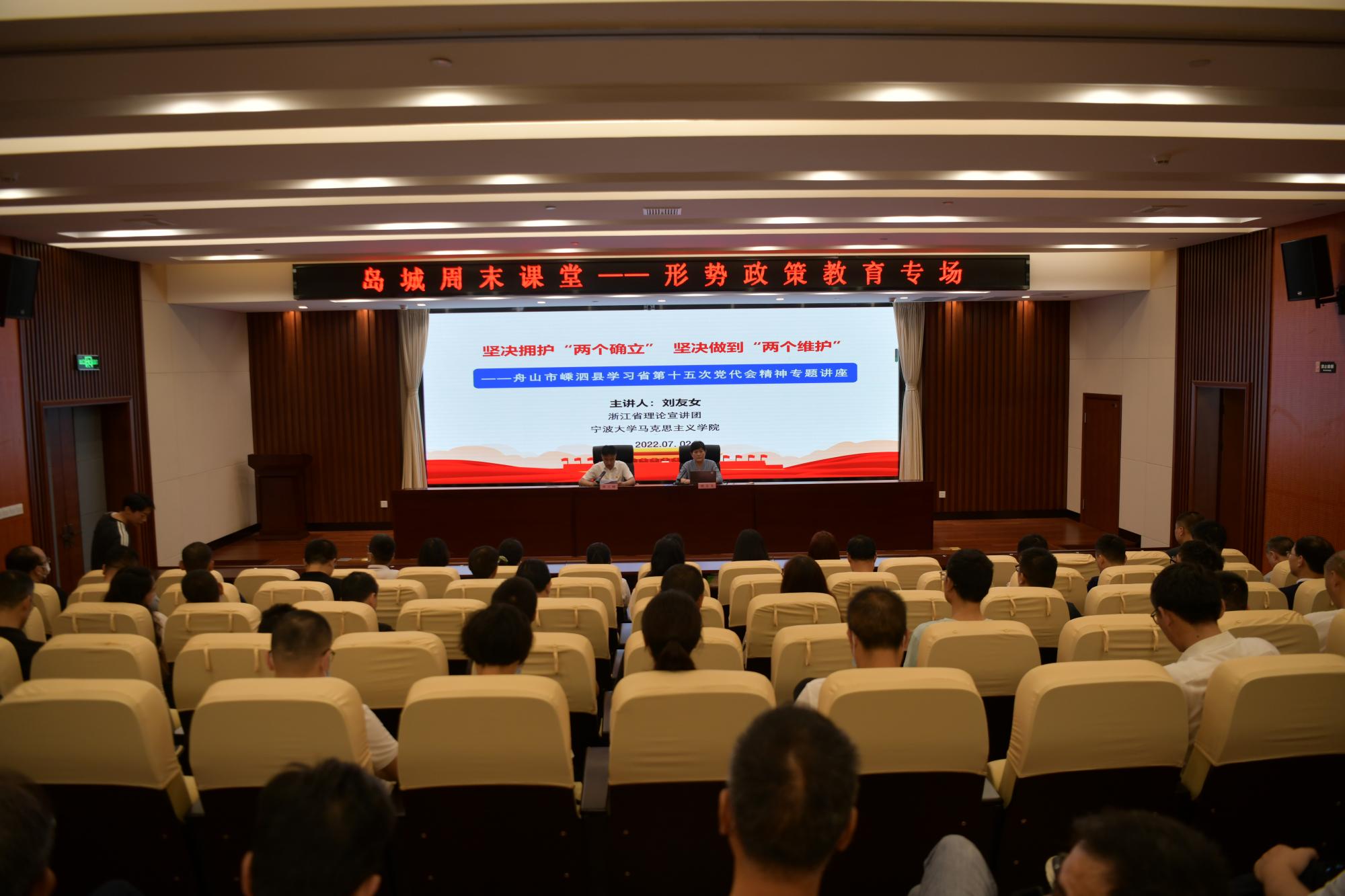 正值全省贯彻落实浙江省第15次党代会精神之际,学院党总支书记刘友女教授受邀走进“岛城周末课堂”,为嵊泗县委机关干部作专题报告。她以《坚决拥护“两个确立” 坚决做到“两个维护”》为题,对浙江省第15次党代会精神实质作了详细分析。刘友女指出,党的十八大以来,习近平总书记5次亲临浙江,对浙江工作作出了一系列重要指示,亲自为新时代浙江赋予光荣使命、擘画宏伟蓝图。党中央赋予浙江光荣使命,为新发展阶段浙江的高质量发展、竞争力提升和现代化先行注入了强劲动力。要坚决做到“总书记有号令,党中央有部署,浙江见行动”。主持宣讲会的县委宣传部部长刘立峰表示,这次讲座契合广大干部对经济社会发展态势的关切,把党的创新理论宣讲与当地事业发展实践相结合,析事明理,解疑释惑,深受启发。