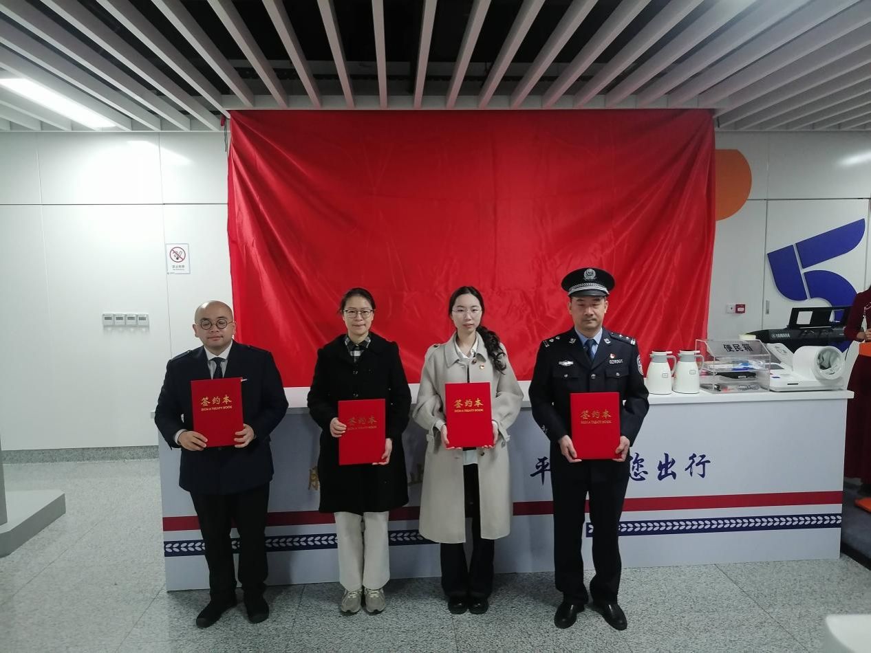 思想政治教育研究生党支部与市公安局轨道交通治安分局清水浦站派出所党支部警校党建共建签约暨甬轨驿站揭幕仪式在三官堂地铁站举行。院党委书记蒋开东、党委副书记吴莲红,市轨道交通集团有限公司智慧运营分公司党委书记魏军、市公安局轨道交通治安分局党委副书记、政委励栋等出席仪式。