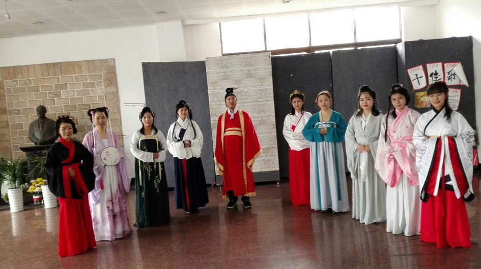 此次教工文化活动展示会得到了学院党政领导大力支持,院党总支书记方晓春亲自上阵参与表演。学院分工会精心组织、细心服务。同时,此次活动也得到了全院教职工的热情关注和广大女教工的积极响应,由马院“金嗓子”朱珂老师担任主唱,解红晖、康洁、李桂英、陈燕等10位老师配合展示汉服。老师们牺牲了宝贵的个人休息时间,积极参加节目的排练,充分体现了学院团结和谐、健康向上的氛围。