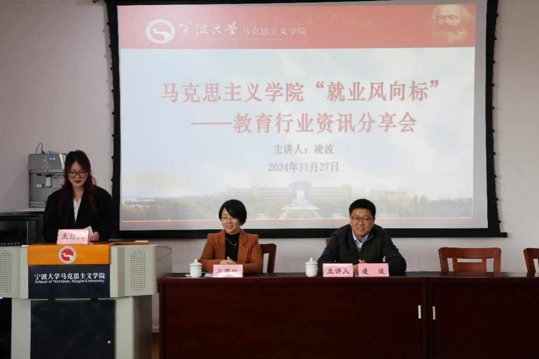 “就业风向标”——教育行业资讯分享会在包玉书科学楼7-406会议室举办。活动特邀宁波市教育考试院副院长凌波作咨询分享,院党委副书记吴莲红出席,就业辅导员曹慧娟主持,本研共100余名学生参加。
