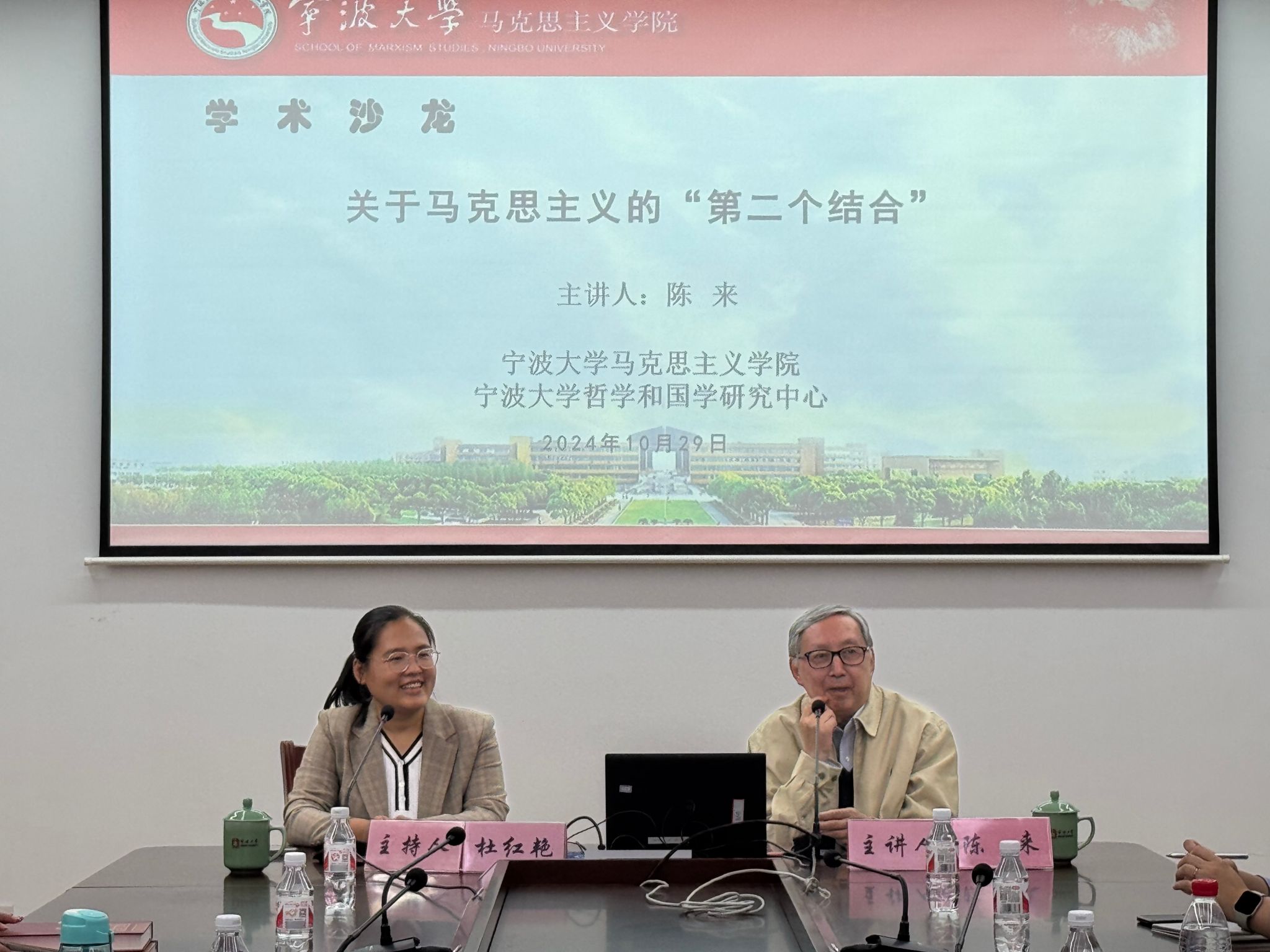 陈来教授指出,文化强国建设是我国社会主义现代化强国建设中间的一项重要任务。而“第二个结合”重要论断,不仅构成文化强国建设的核心命题,也立足于马克思主义中国化进程之中,具备丰富的历史内涵。陈教授举以范例,如理学民本思想与中国共产党以人民为中心的价值情怀、阳明心学与共产党人纪律自觉等,勉励在场师生找到恰当切入点,开拓“第二个结合”相关研究新境界。