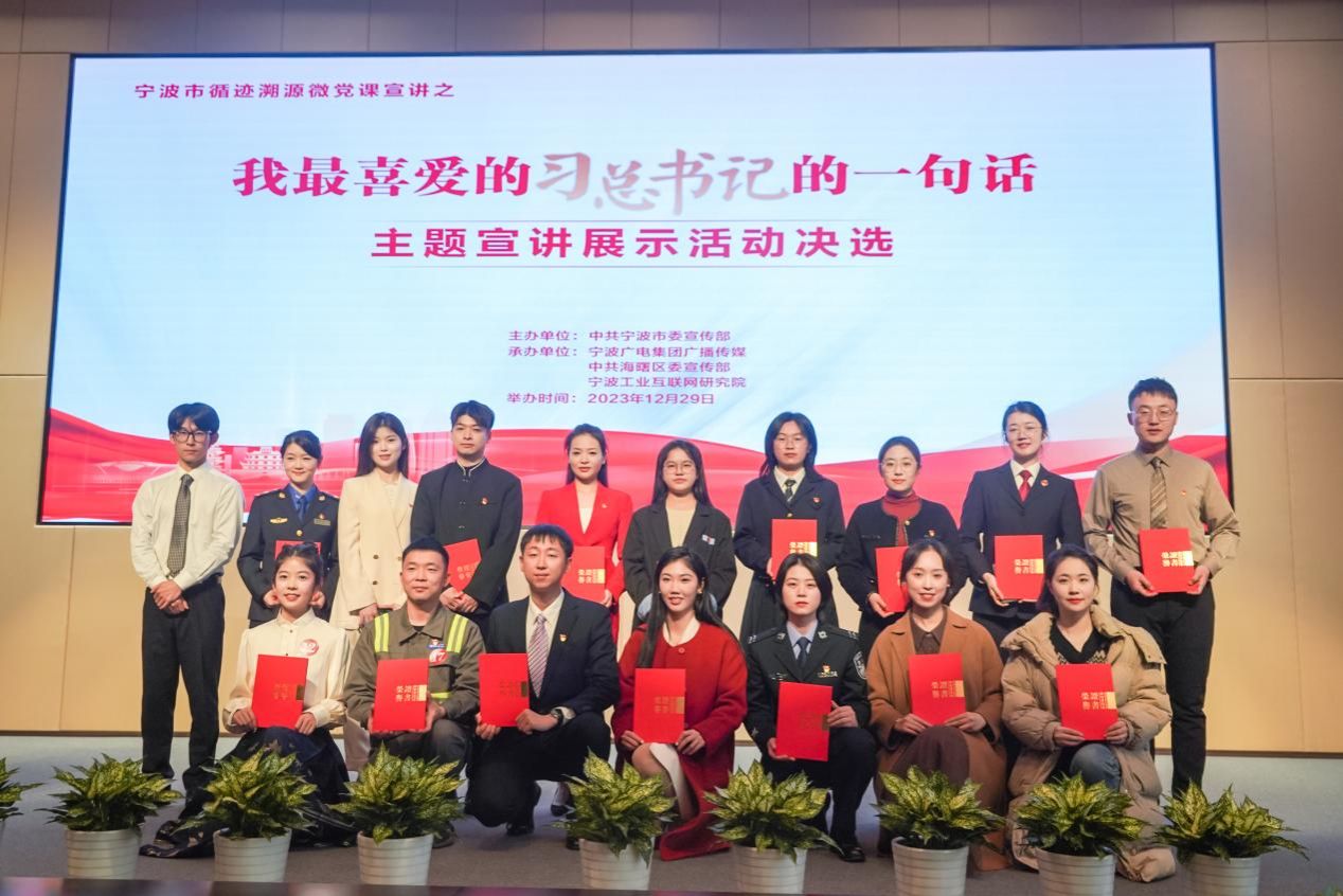 12月29日,由中共宁波市委宣传部主办,宁波广电集团广播传媒、海曙区委宣传部、宁波工业互联网研究院承办的2023年宁波市“我最喜爱的习总书记的一句话”宣讲展示暨循迹溯源微党课决赛顺利落幕。