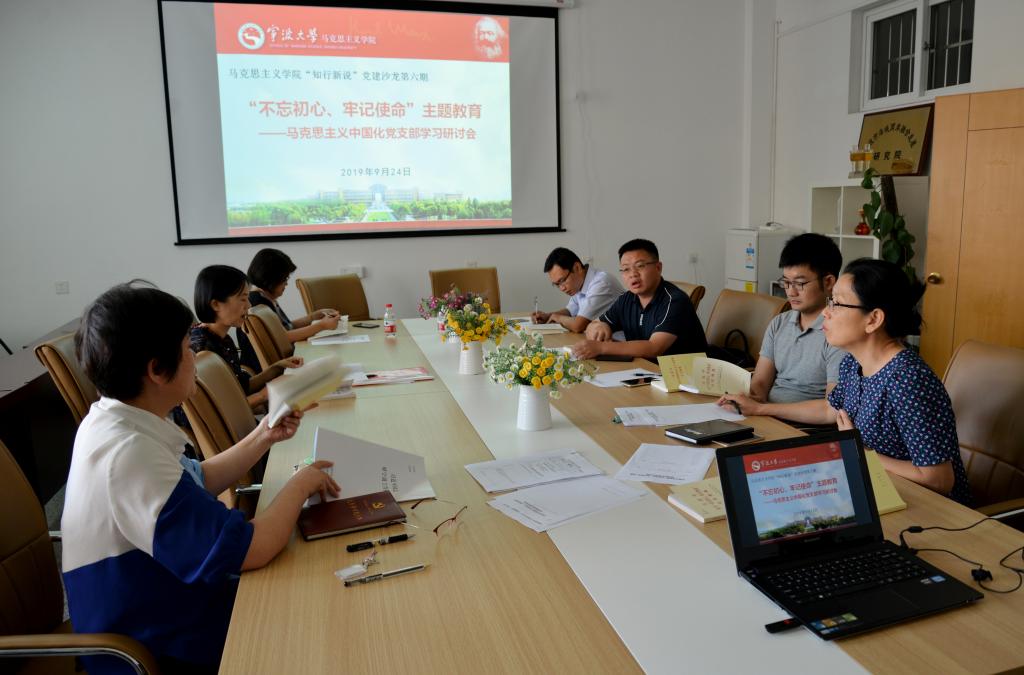 为做好“不忘初心、牢记使命”主题教育工作,推动学习贯彻习近平新时代中国特色社会主义思想往深里走、往心里走、往实里走,9月24日,马克思主义中国化党支部通过“读书会”的形式开展了主题教育活动。活动由支部书记袁玲儿主持。学院党总支书记刘友女出席了活动。