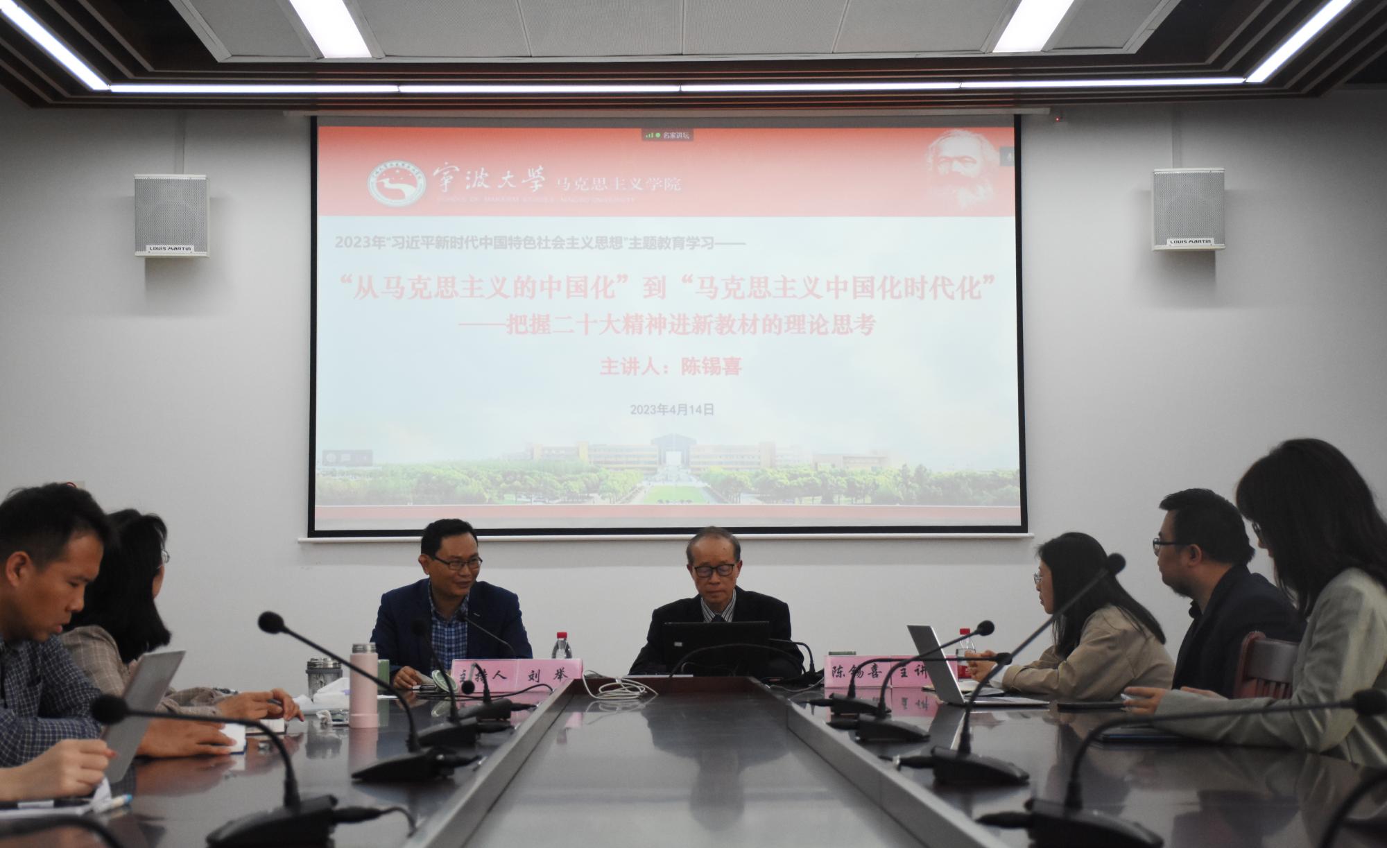 为深入开展学习贯彻习近平新时代中国特色社会主义思想主题教育,深化理论学习,积极推动主题教育走深走实。4月14日下午,在包玉书科技楼7号楼513会议室,上海交通大学博士生导师陈锡喜教授应邀以“从‘马克思主义的中国化’到‘马克思主义中国化时代化’——把握二十大精神进新教材的理论思考”为题,作校人文社科“名家讲坛”第344讲暨同城约炮