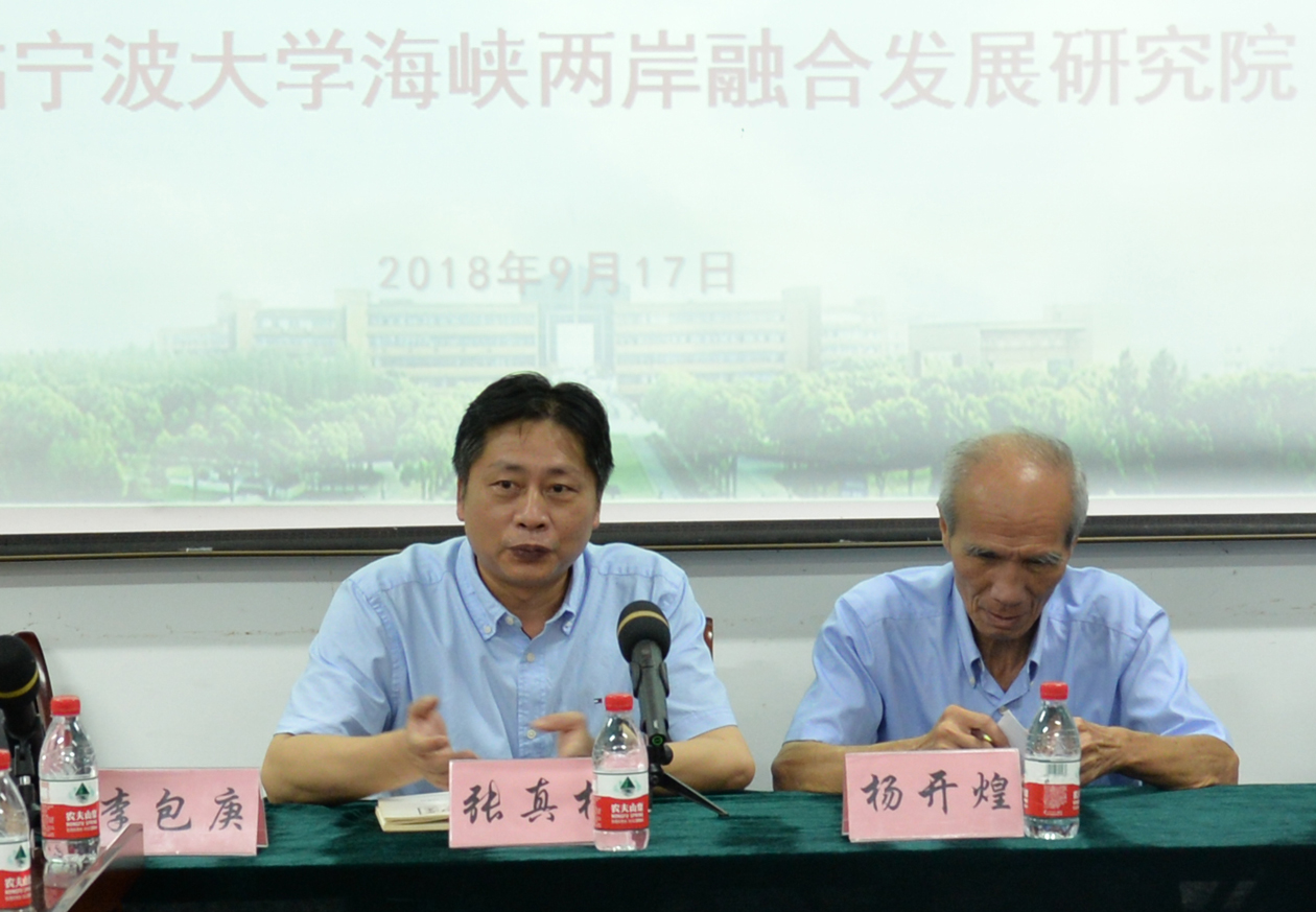 9月17日,台湾铭传大学杨开煌教授一行莅临宁波市海峡两岸融合发展研究院,在包玉书楼11号楼102会议室与我校师生举行了座谈交流。校党委委员、宣传部长、台湾研究院院长、市海峡两岸融合发展研究院院长张真柱主持会议。