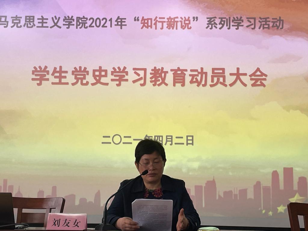 学生党史学习教育动员大会在7号楼406报告厅召开。院党总支书记刘友女主持本大会并讲话,学院全体学生党员以及入党积极分子、发展对象和预备党员参加动员会。