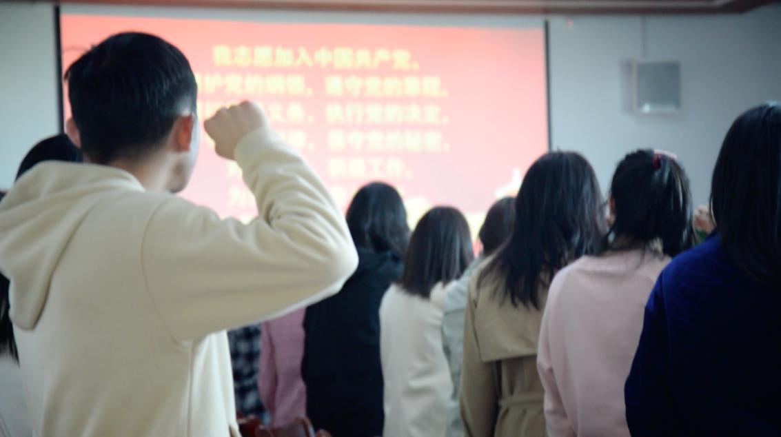 最后是重温入党誓词。重温入党誓词,使我们每位党员不忘责任和使命,牢记我们党员要发挥党员的先锋模范作用,时刻做到全心全意为人民服务。