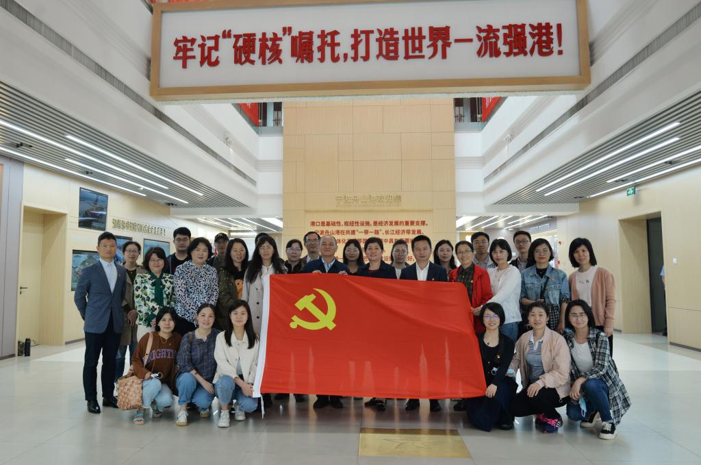 为全面学习贯彻习近平新时代中国特色社会主义思想,扎实推进党史学习教育,5月21日,学院党总支组织开展了宁波舟山港穿山港区“迎七一 庆百年 党旗在我心中”主题党日活动。院党总支书记刘友女、执行院长李包庚以及各支部教师党员30余人参加了此次活动。