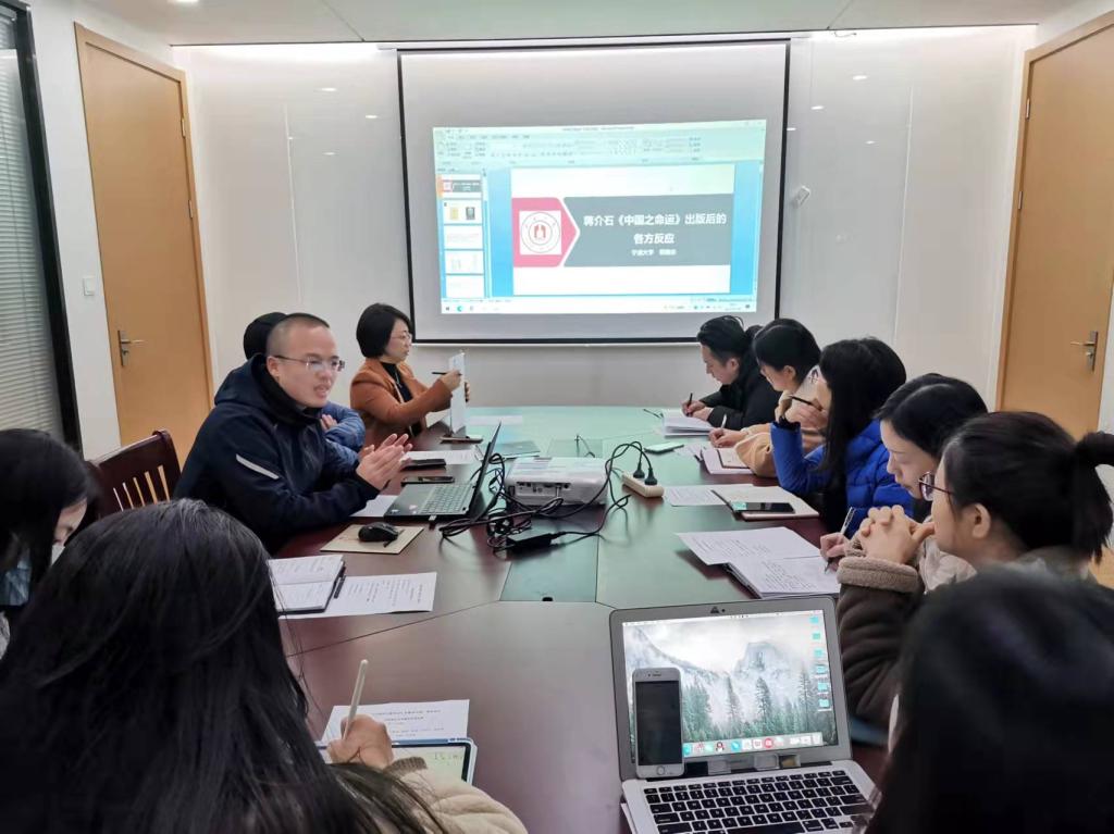 此次学习会以“国共合作”为主题,特邀嘉宾思想政治教育党支部书记郑善庆通过微党课《蒋介石<中国之命运>出版后的各方反应》、支部党员曾辛键以党史故事《1944年中外记者西北参观团与国共舆论宣传战》,分别阐述了国共二次合作背景下,针锋相对的意识形态之争。郑善庆指出,1943年蒋介石《中国之命运》一书出版,由此展开的国共两党“笔战”较量,是抗战时期政治思想战线斗争的高潮,也是两党意识形态之争的历史上分水岭式的重大事件,揭露了蒋介石集团的反动本质,宣传了共产党的主张,提高了共产党的威望。曾辛键讲述了1944年中外记者团西北之行为中共逐渐摆脱舆论被动困境、改变舆论生态环境提供了契机,也为扩大对外发展空间开启了一扇大门的重要历史事件。