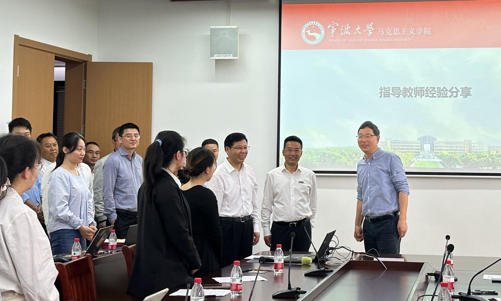 宣讲团导师代表冯程分享了宣讲经验。宁波市知行新说“00后”青年宣讲团团长,院“初心”理论宣讲团副团长陈莹为大家介绍了“初心”理论宣讲团近10年的发展历程。宣讲团成员孙玲、任巧丽、高嘉晨以及潘知涵先后围绕党的二十大精神和“八八战略”做宣讲展示,宣讲团导师们一一给予了指导意见。